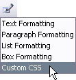 "Custom Css" menu item. | CssText | btnCssText | true | Yes | Yes |